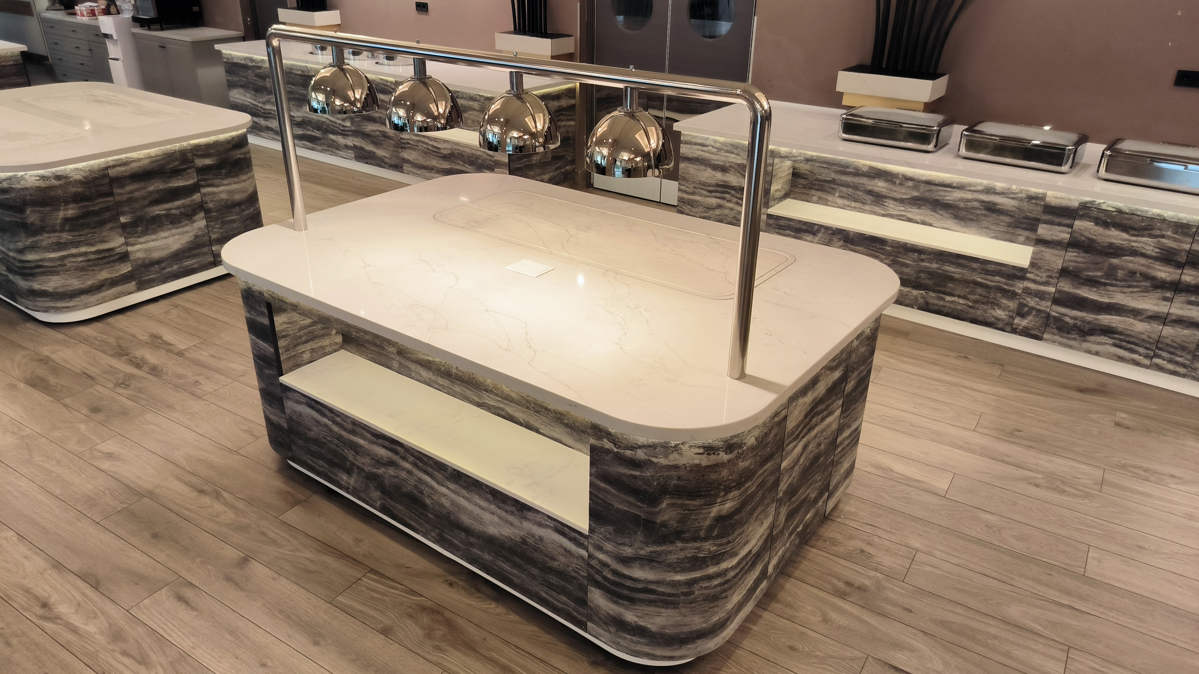 Шведская линия с охлаждаемыми поверхностями из кварцевого агломерата.