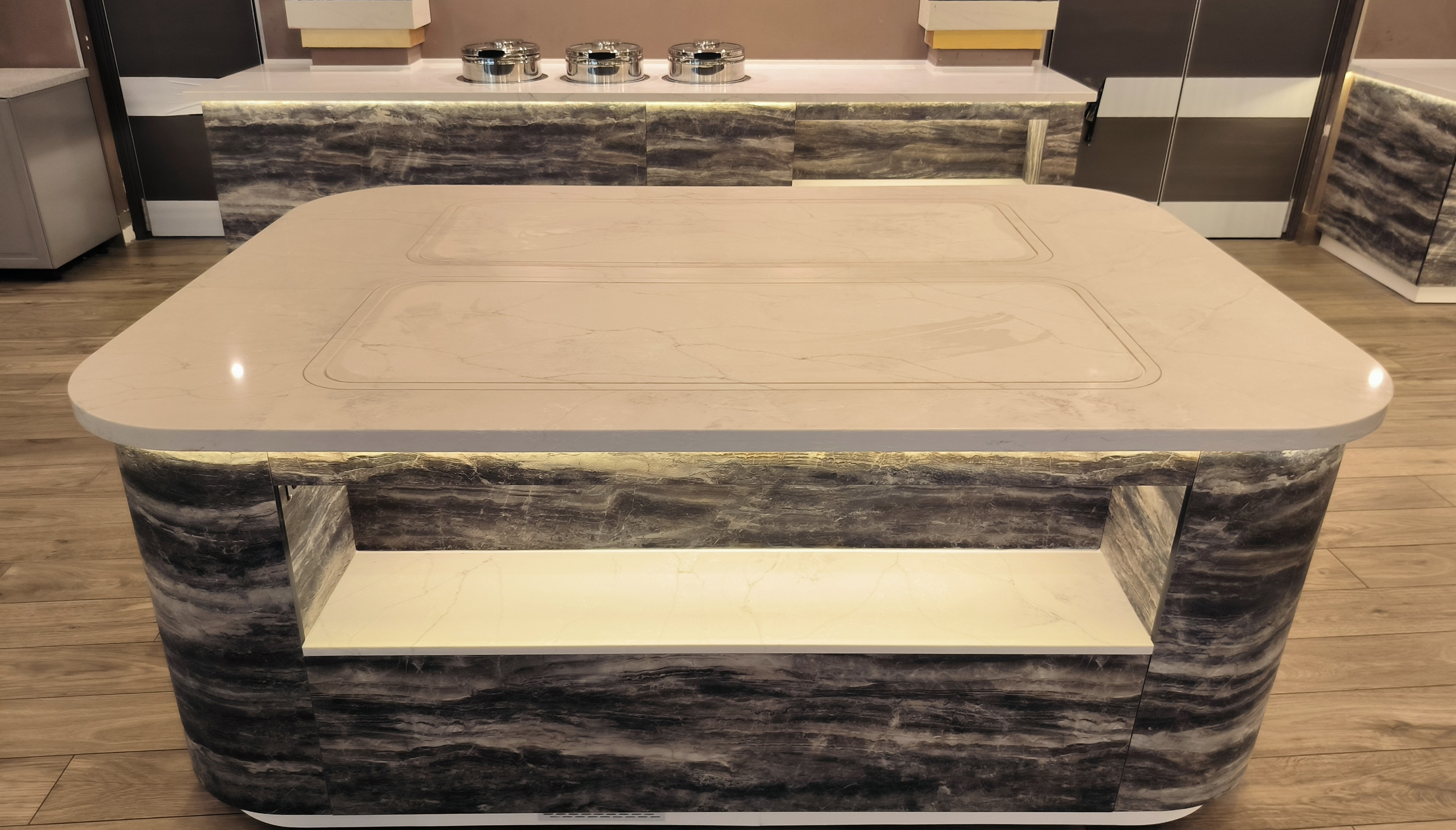 Мармиты для первых блюд, встроенные в корпус модуля, создающие эргономичный и стильный дизайн.